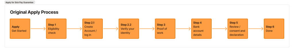 The original Apply process was a 6-step journey for users, including an eligibility check, account creation, identity verification, and proof of work. This flow had an average completion time of 15 minutes.